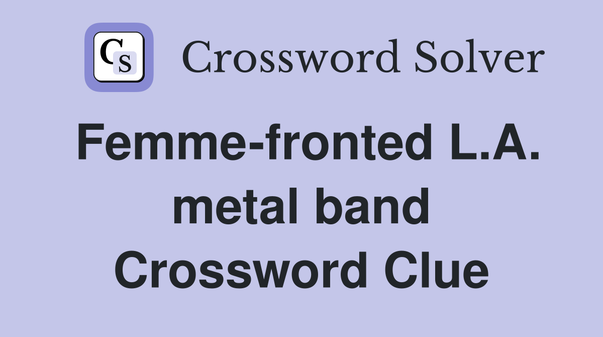 Femme fronted L A metal band Crossword Clue Answers Crossword Solver