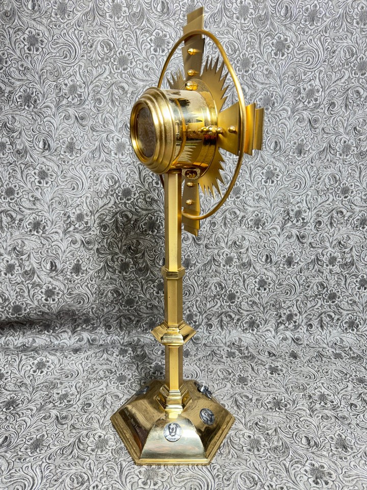 Vintage Monstrance Catholic Church Adoration Eucharist Relic Apostles