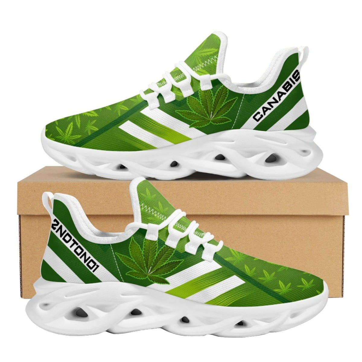 3D Green Weed Leaves Printing Platform Sneakers for Women Breathable