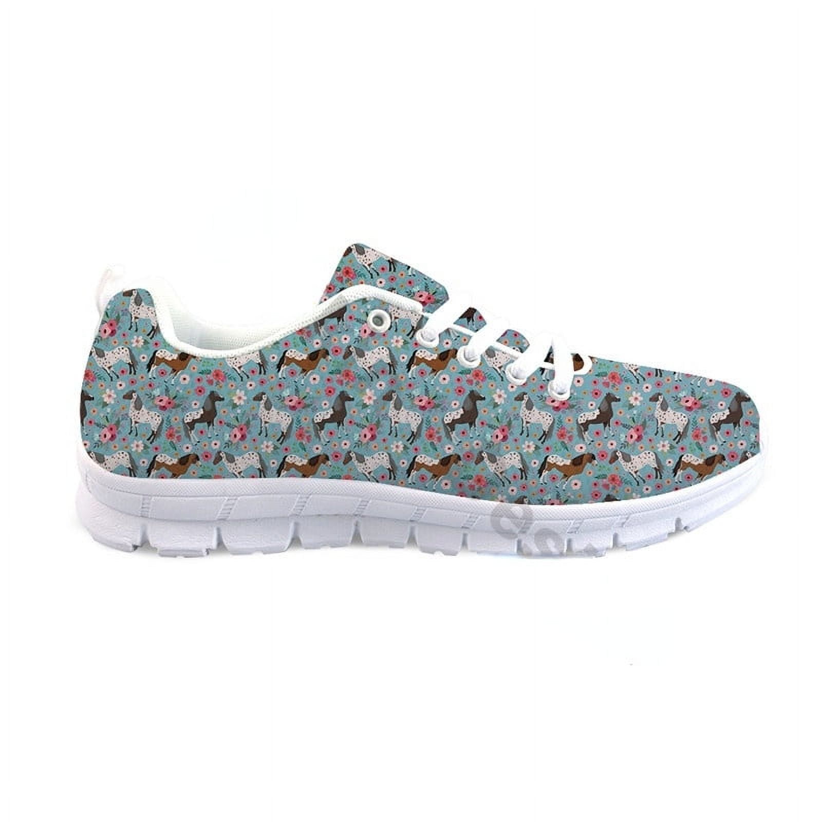 Black Sneakers Women Platform Casual Shoes Floral Horse Design