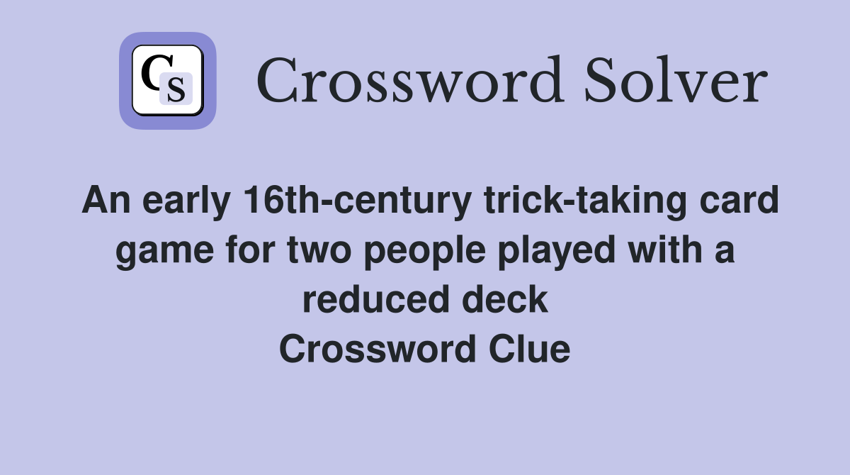 Thirteen trick card game (5) Crossword Clue Answers Crossword Solver