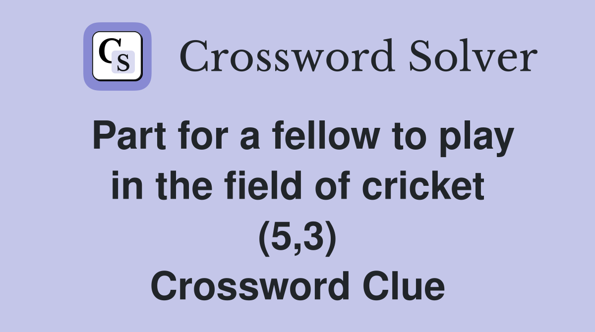 Part for a fellow to play in the field of cricket (5 3) Crossword