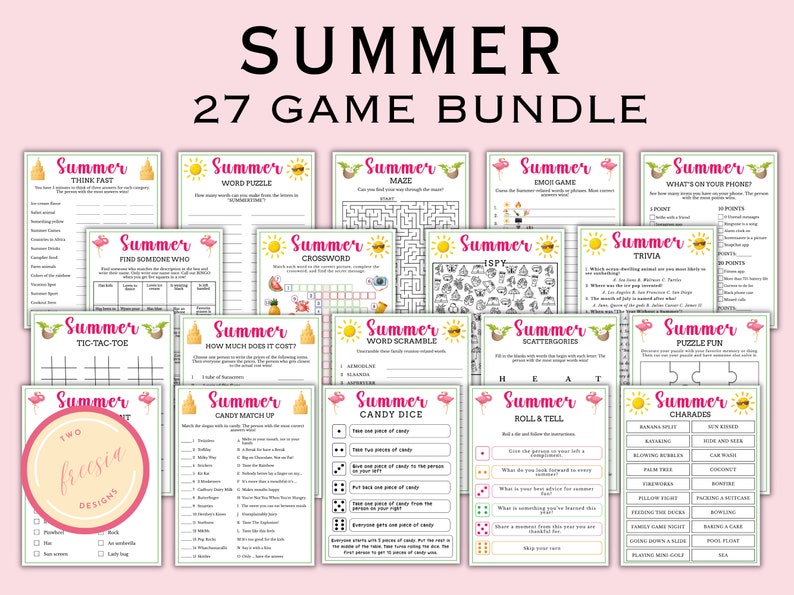 27 Summer Party Games Bundle Printable Beach Pool Party Games and