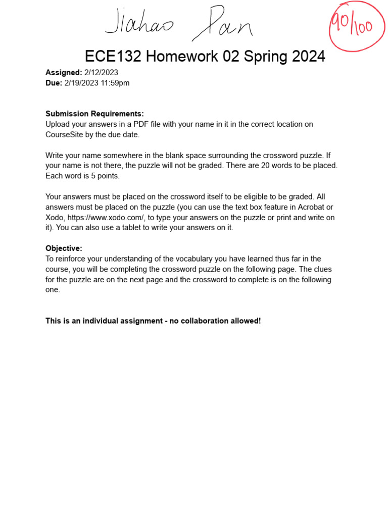 ECE132 HW2 Jiahao Pan PDF Crossword Computer Programming