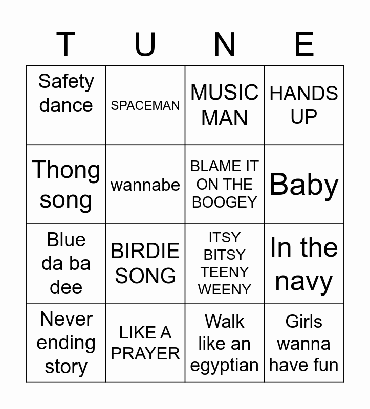 Name That Tune Bingo Card
