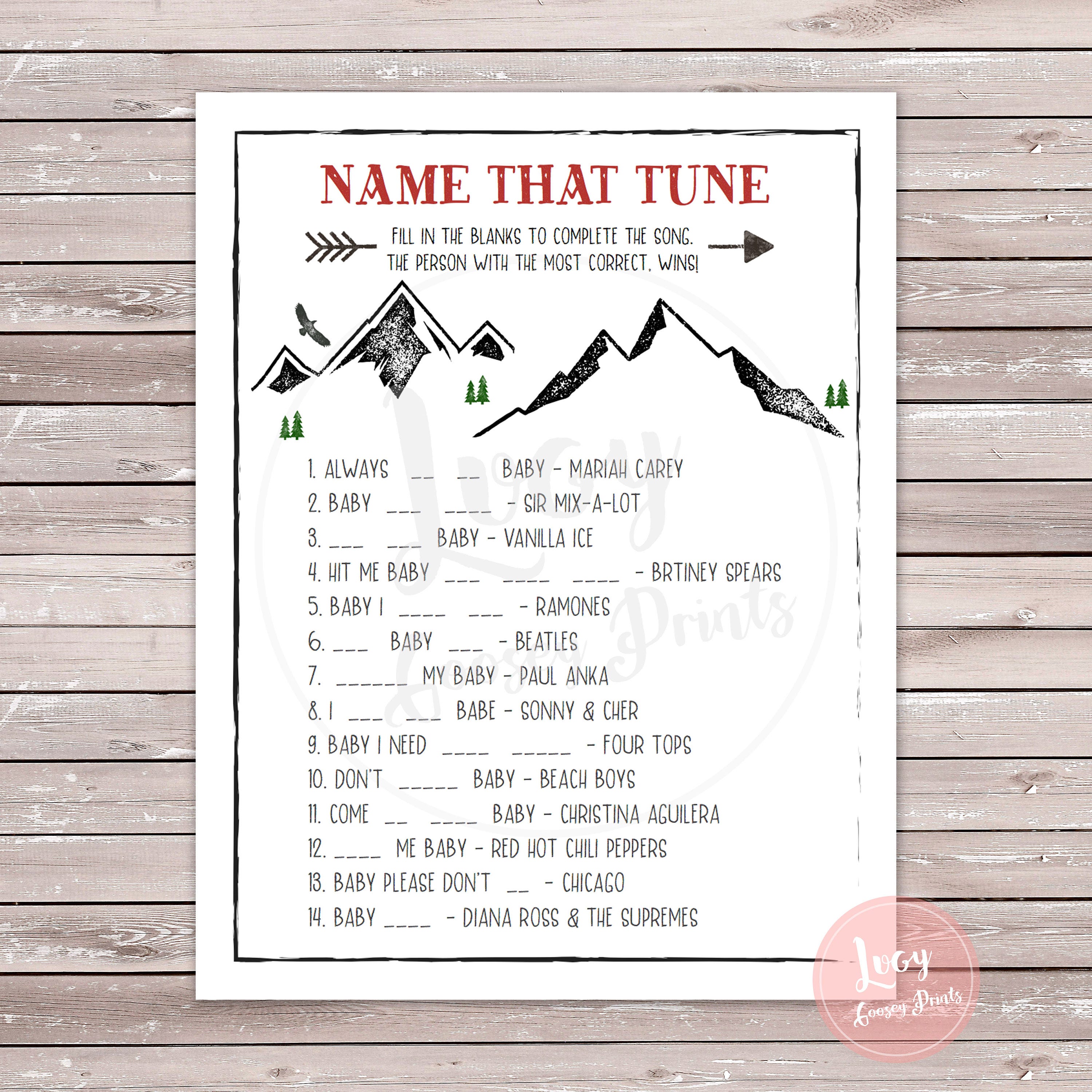 Name That Tune Printable Game Instant Download Baby Shower