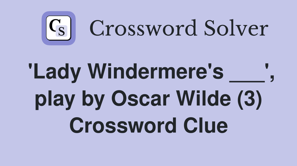 #39 Lady Windermere #39 s #39 play by Oscar Wilde (3) Crossword Clue