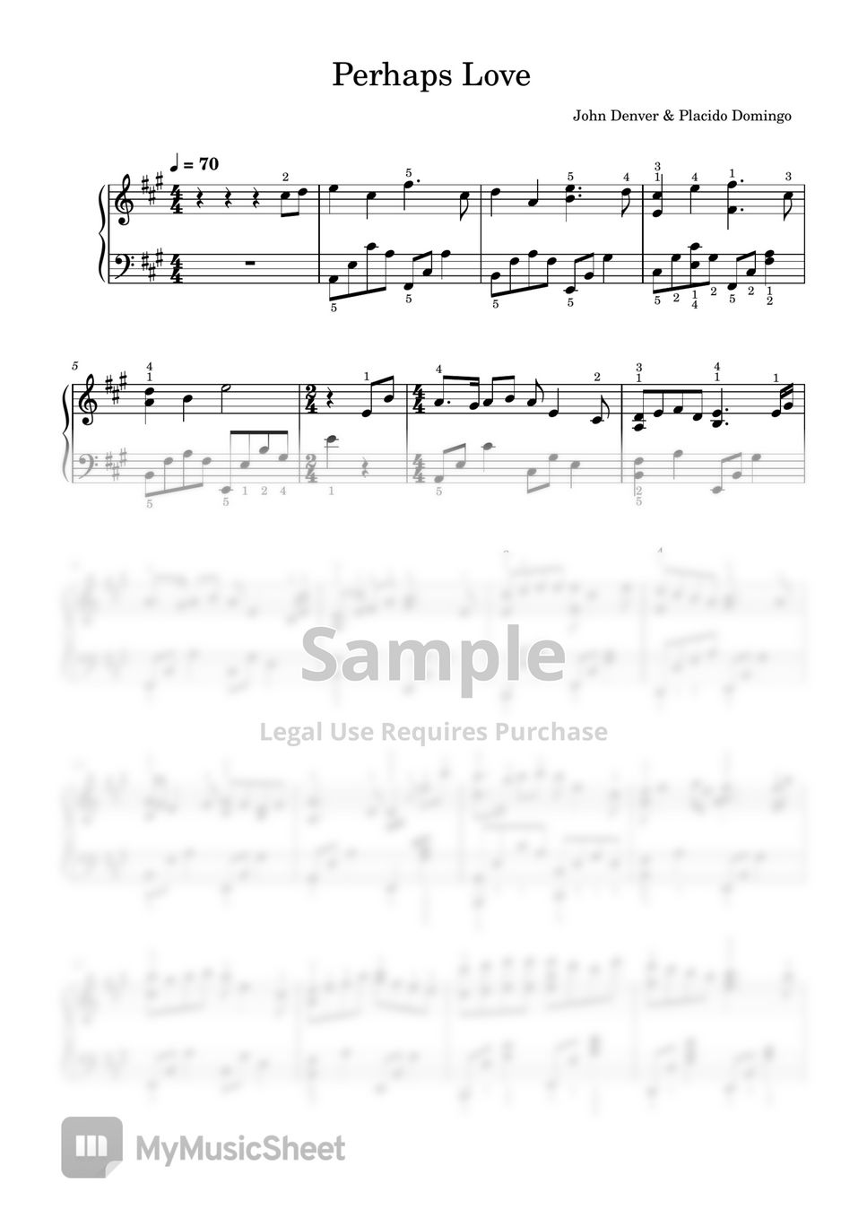 John Denver Perhaps Love (Piano Solo) Sheet Music by SangHeart Play