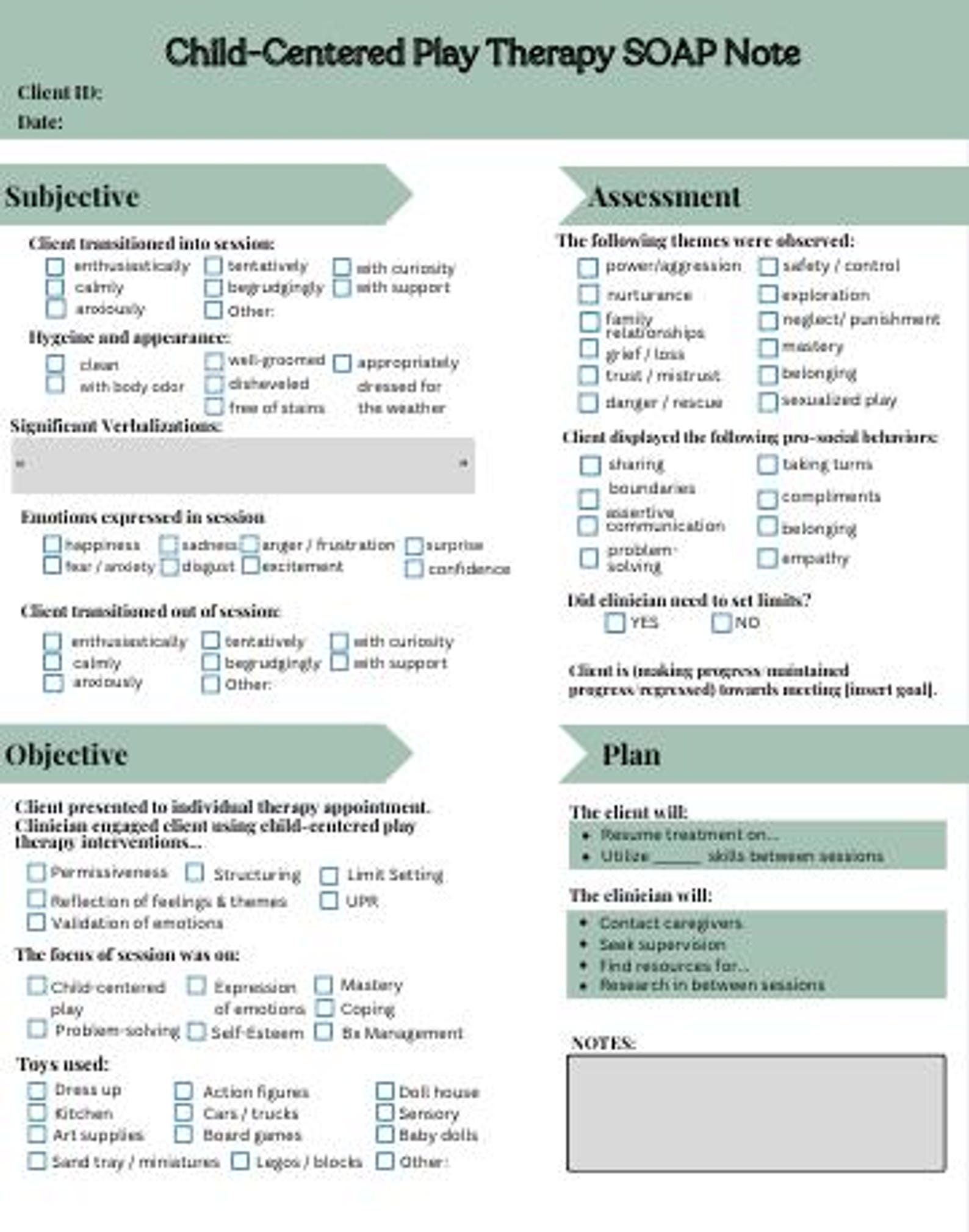 Play Therapy SOAP Note Template (GREEN) Etsy