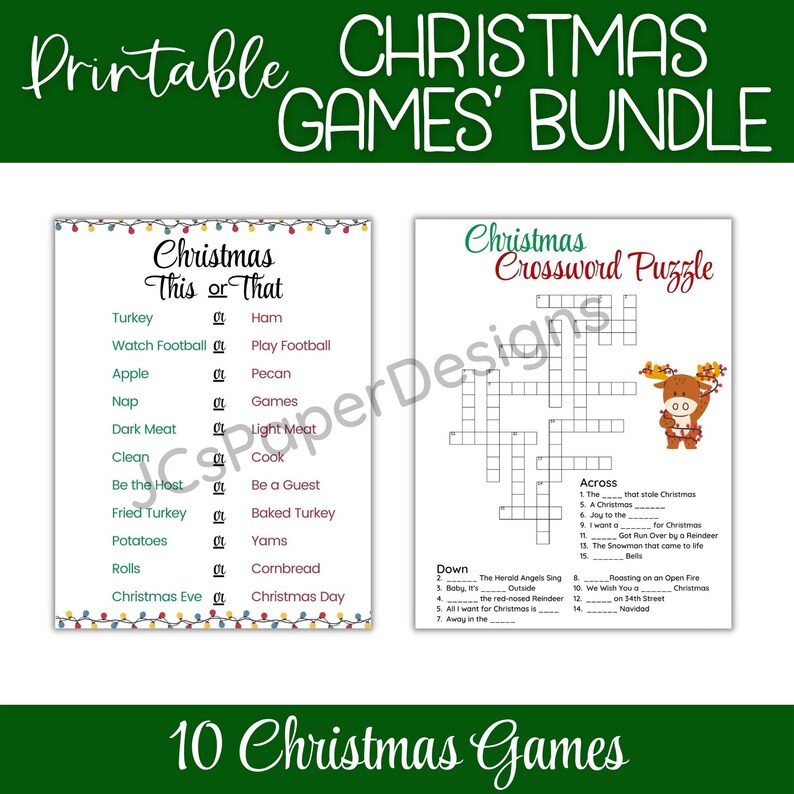 Christmas Printable Games for Kids and Adults Holiday Games for