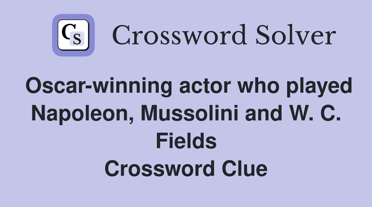 Oscar winning actor who played Napoleon Mussolini and W C Fields