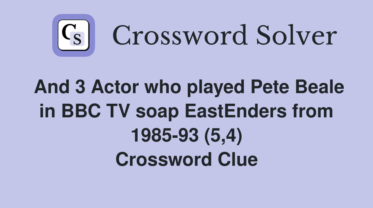 And 3 Actor who played Pete Beale in BBC TV soap EastEnders from 1985