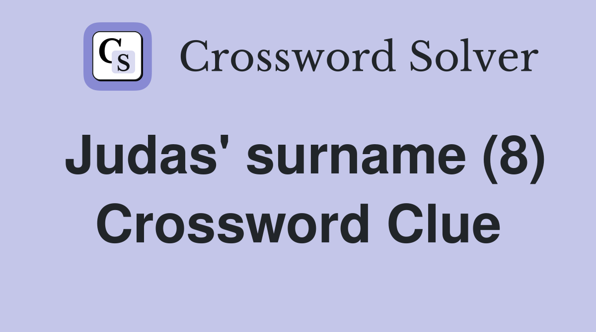 Judas #39 surname (8) Crossword Clue Answers Crossword Solver