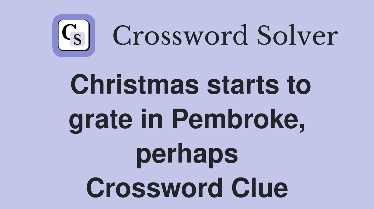 Christmas starts to grate in Pembroke perhaps Crossword Clue Answers