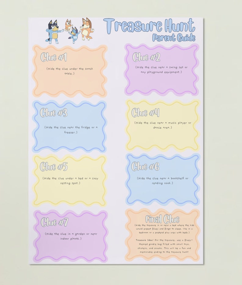 Kids Party Games Bluey and Bingo Themed Scavenger Hunt and Party