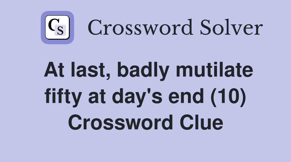 At last badly mutilate fifty at day #39 s end (10) Crossword Clue