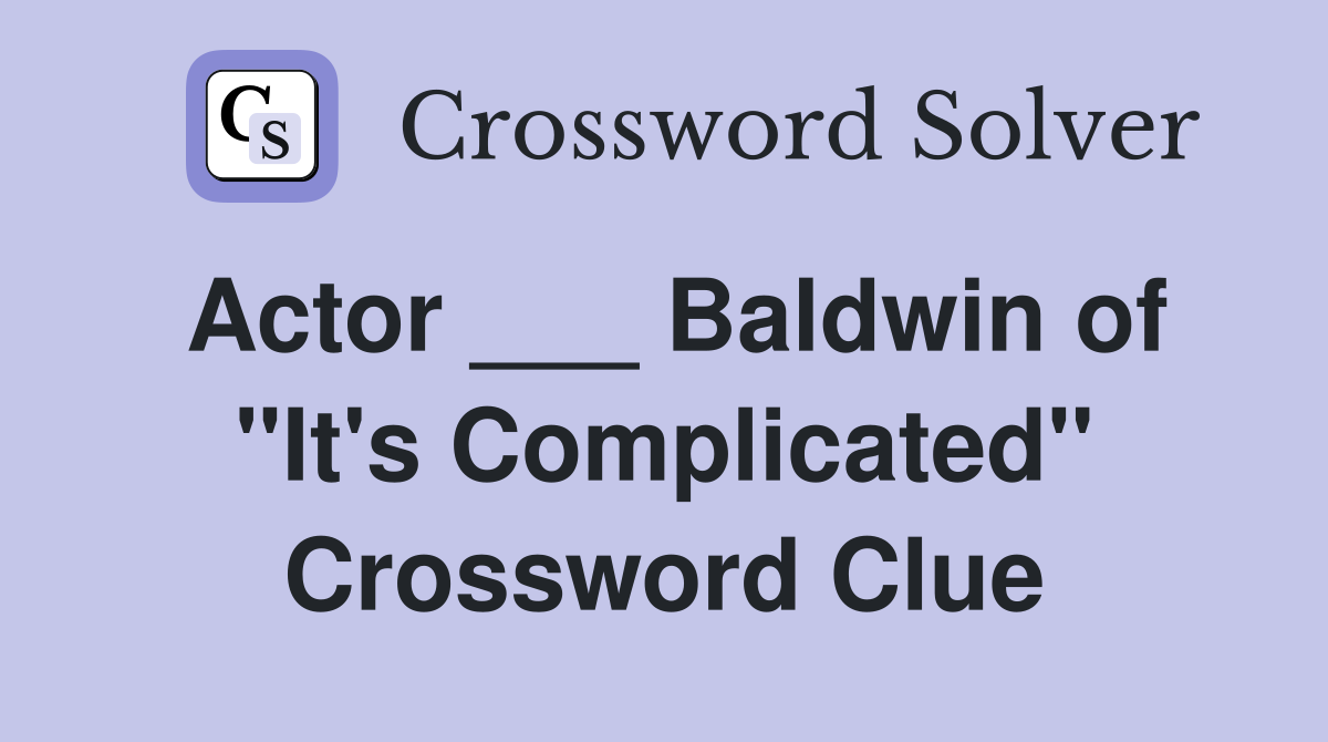 Actor Baldwin of quot It #39 s Complicated quot Crossword Clue Answers
