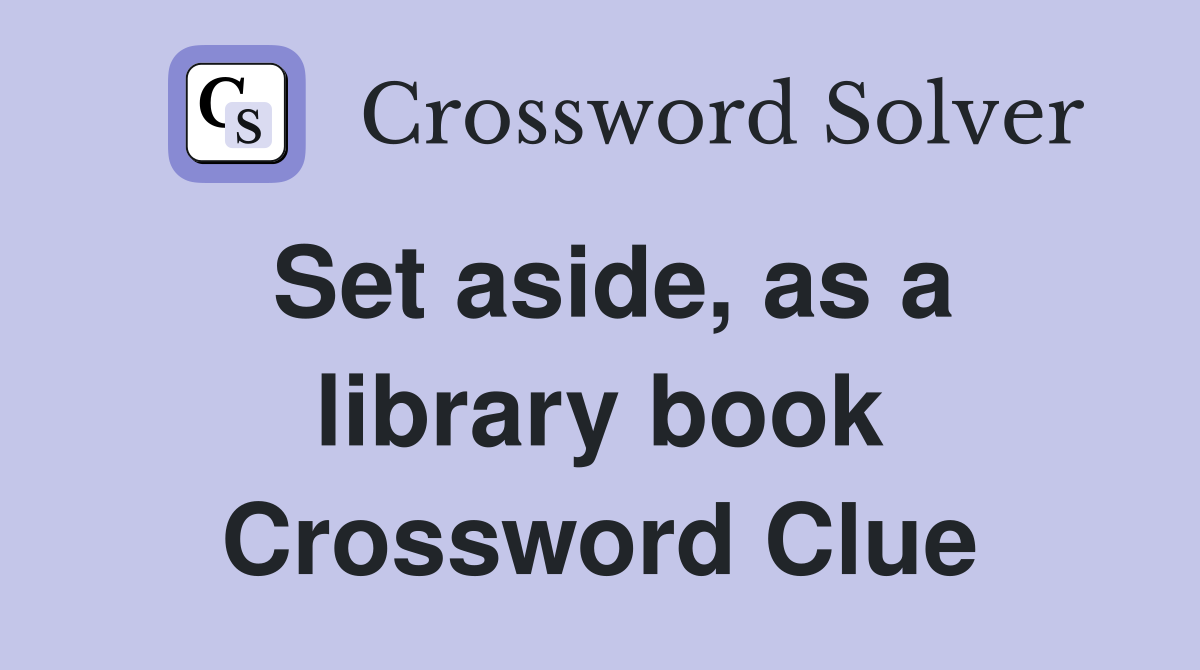 Set aside as a library book Crossword Clue Answers Crossword Solver