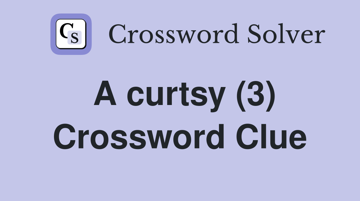 A curtsy (3) Crossword Clue Answers Crossword Solver