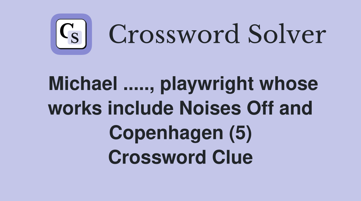 Michael playwright who authored Donkeys #39 Years (5) Crossword Clue