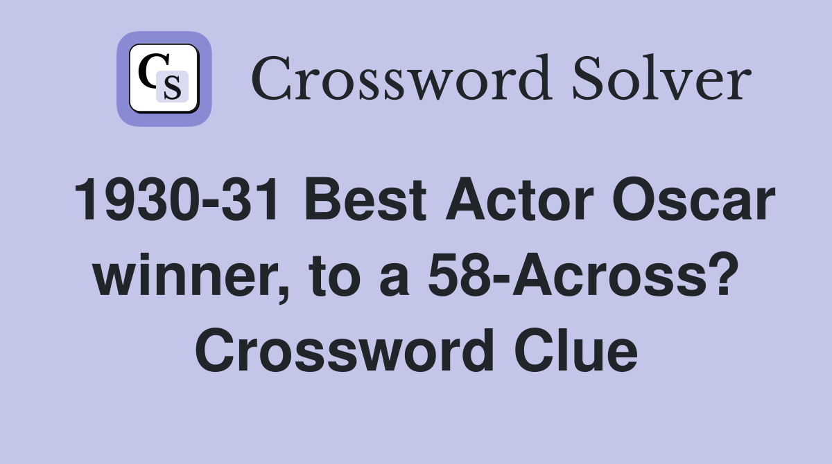 1930 31 Best Actor Oscar winner to a 58 Across? Crossword Clue