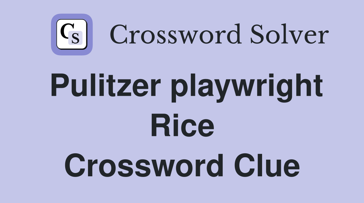 Pulitzer playwright Rice Crossword Clue Answers Crossword Solver