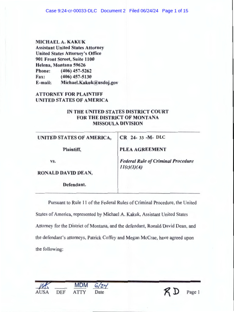 Ronald David Dean Plea Agreement PDF Plea Plea Bargain