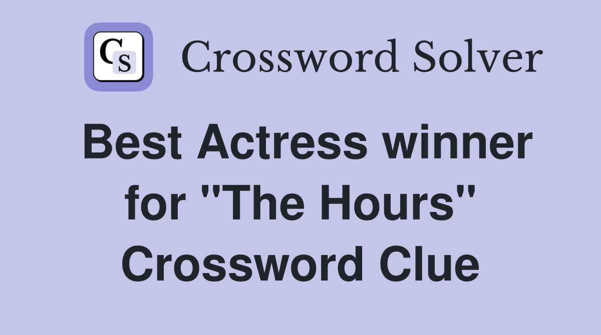 Best Actress winner for quot The Hours quot Crossword Clue Answers