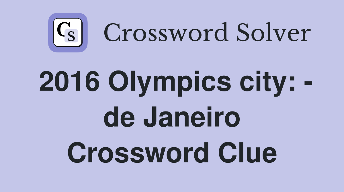2016 Olympics city: de Janeiro Crossword Clue Answers Crossword