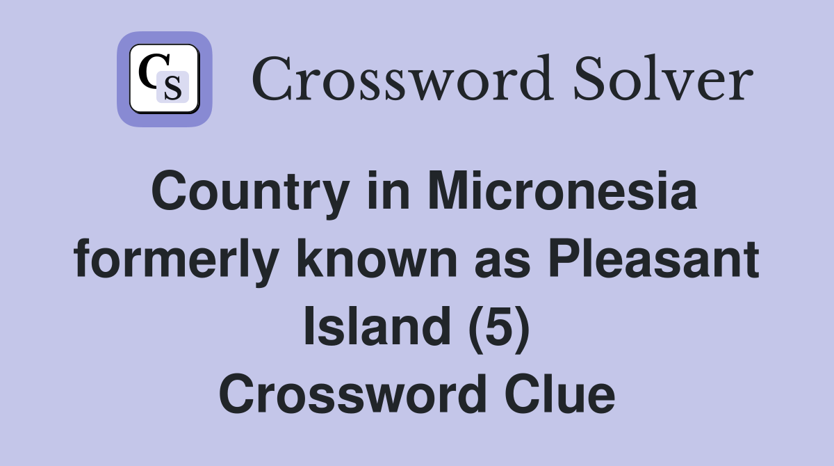 Country in Micronesia formerly known as Pleasant Island (5) Crossword