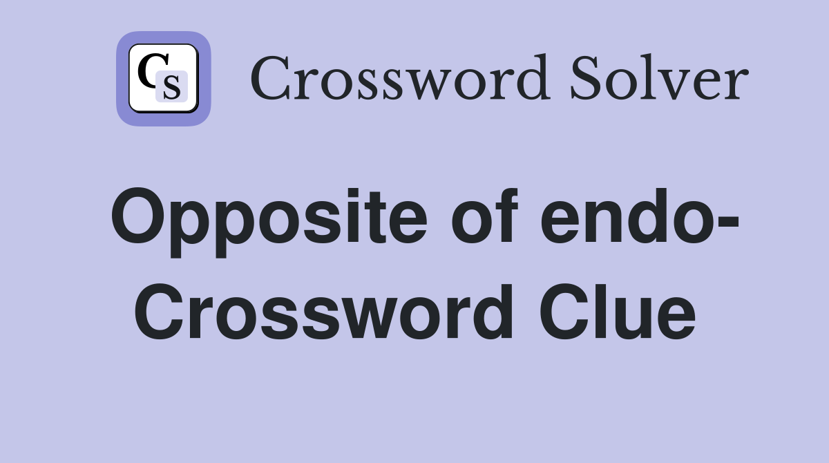 Opposite of endo Crossword Clue Answers Crossword Solver