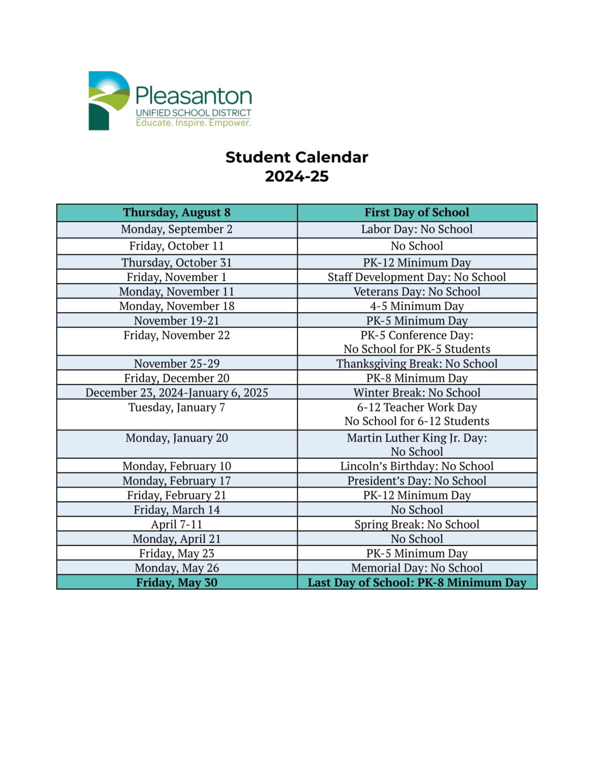 Pleasanton Unified School District Calendar 2024 25: Key Dates To Know