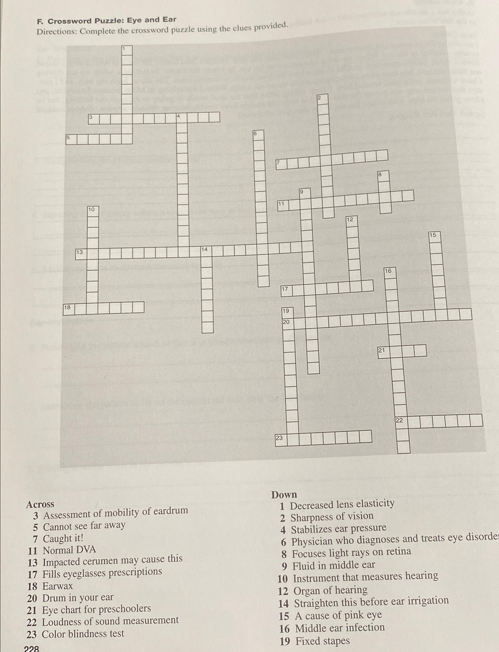 Solved F Crossword Puzzle: Eye and EarDirections: Complete Chegg com