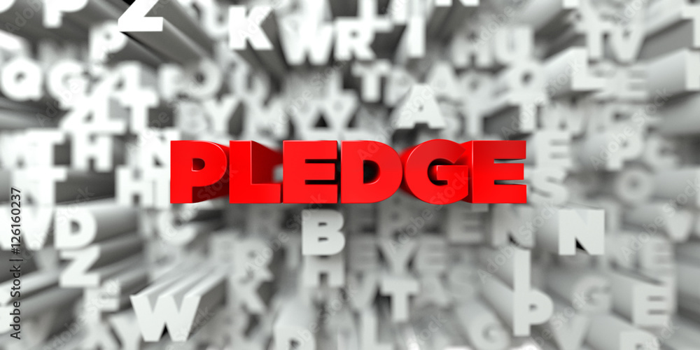PLEDGE Red text on typography background 3D rendered royalty free