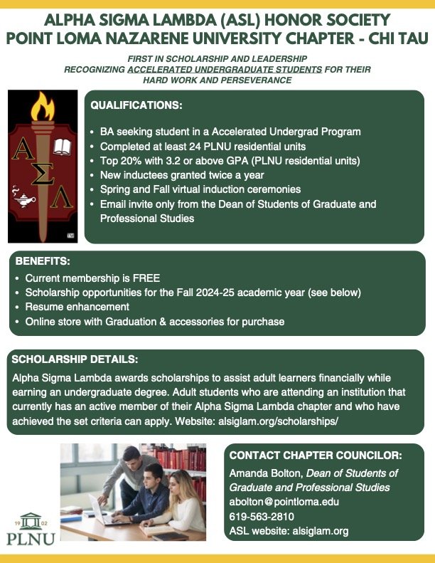 Accelerated Undergraduate Students Inducted Into PLNU #39 s Alpha Sigma