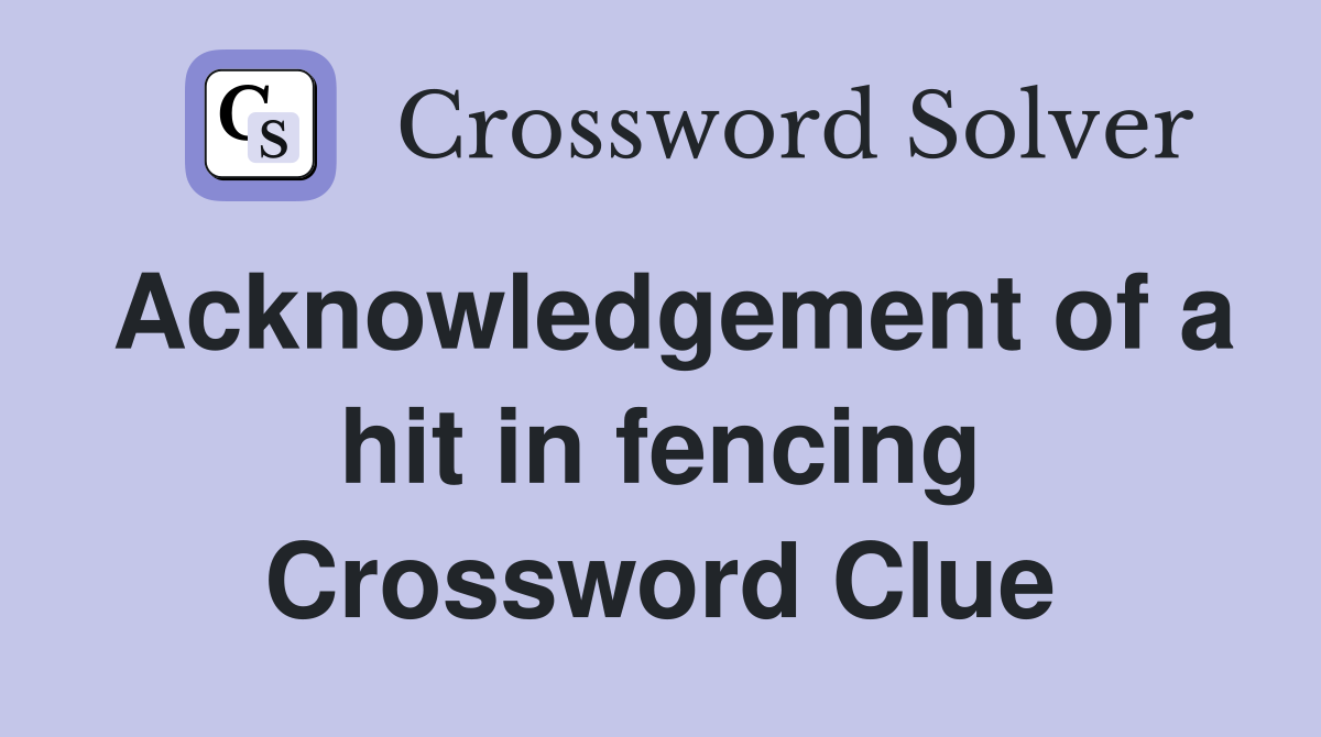 Acknowledgement of a hit in fencing Crossword Clue Answers