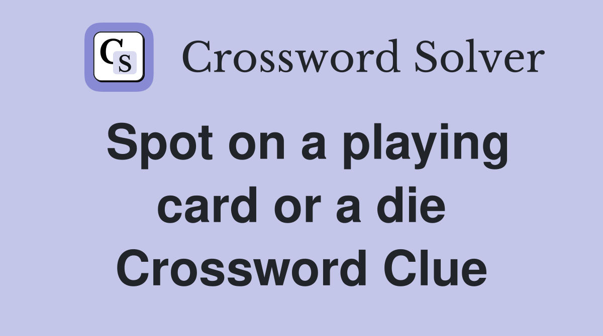Spot on a playing card or a die Crossword Clue Answers Crossword Solver