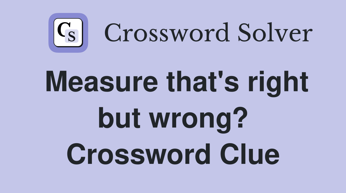 Measure that #39 s right but wrong? Crossword Clue Answers Crossword Solver