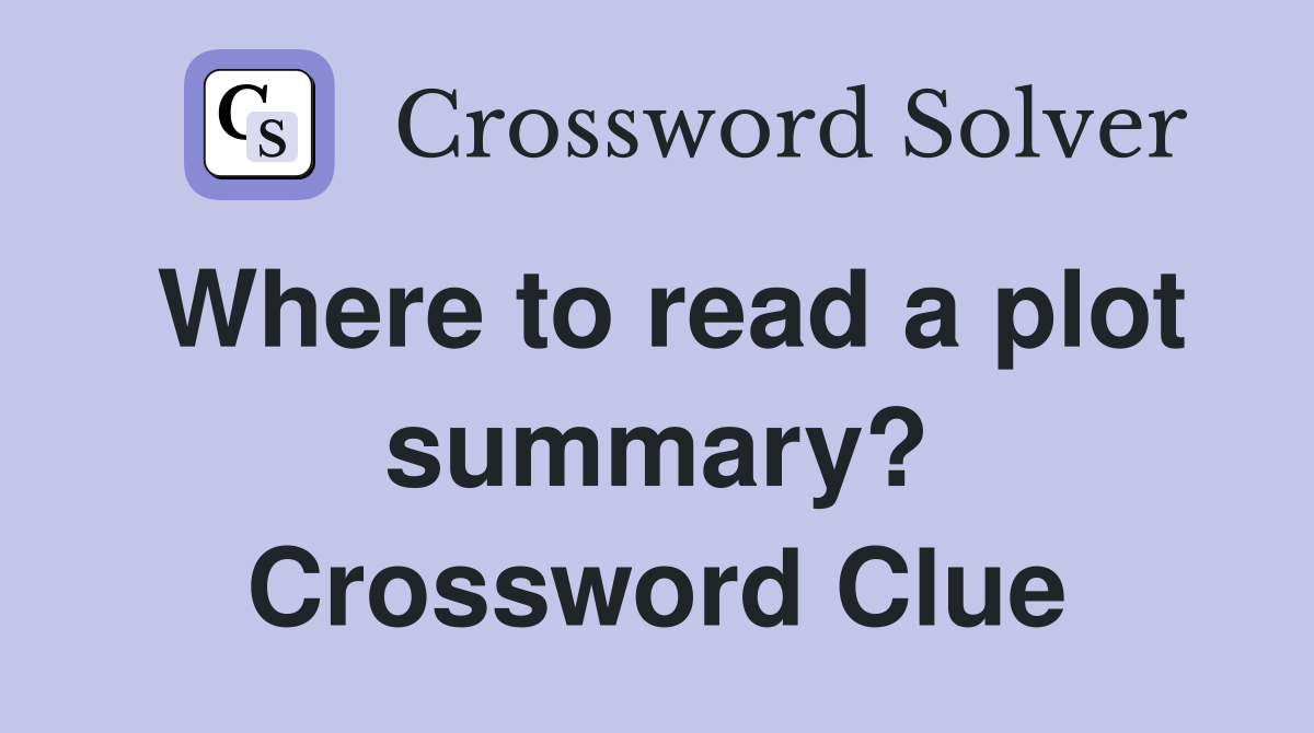 Where to read a plot summary? Crossword Clue Answers Crossword Solver