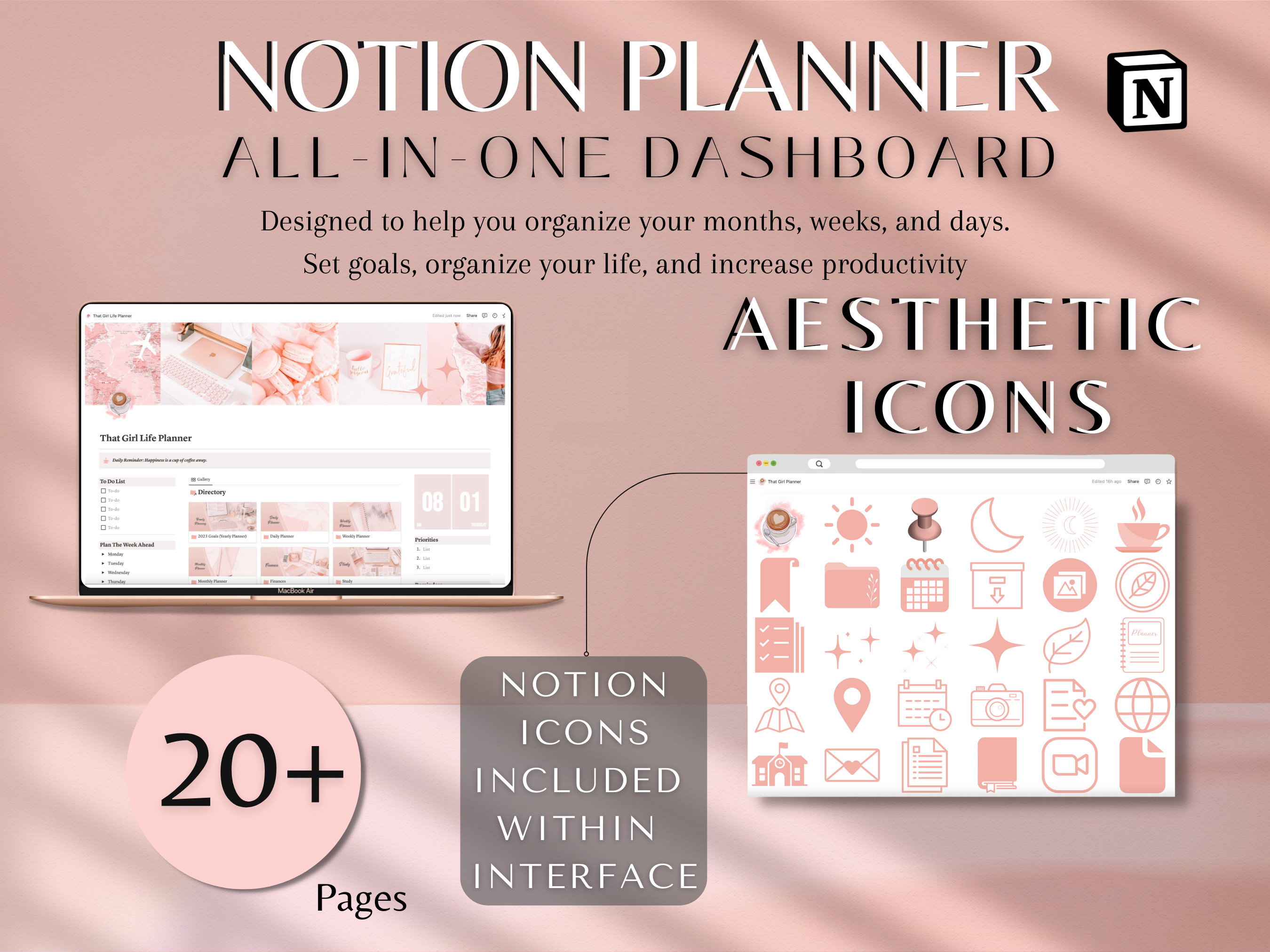 PLR Notion Template 2024 Aesthetic Planner Daily Notion Planner