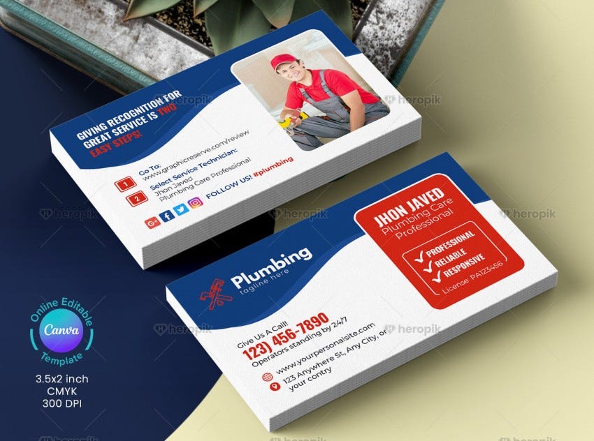 Plumber Business Card Template Canva by Graphic Reserve on Dribbble
