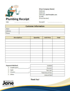 Plumbing Receipt Receipt Template Doc for Word Documents in Different