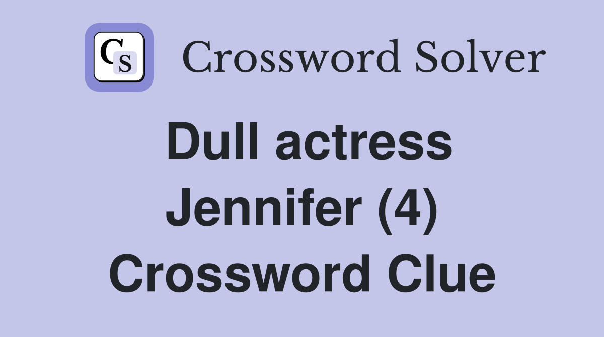 Dull actress Jennifer (4) Crossword Clue Answers Crossword Solver