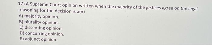 Solved 17) A Supreme Court opinion written when the majority Chegg com