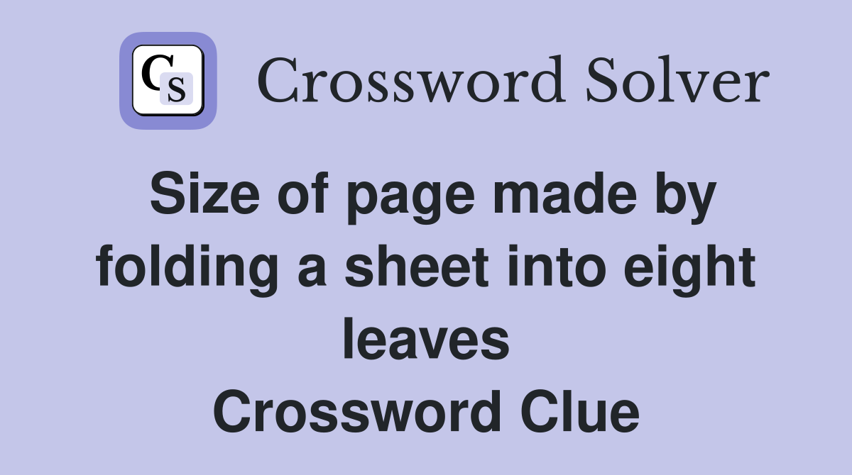 Size of page made by folding a sheet into eight leaves Crossword Clue