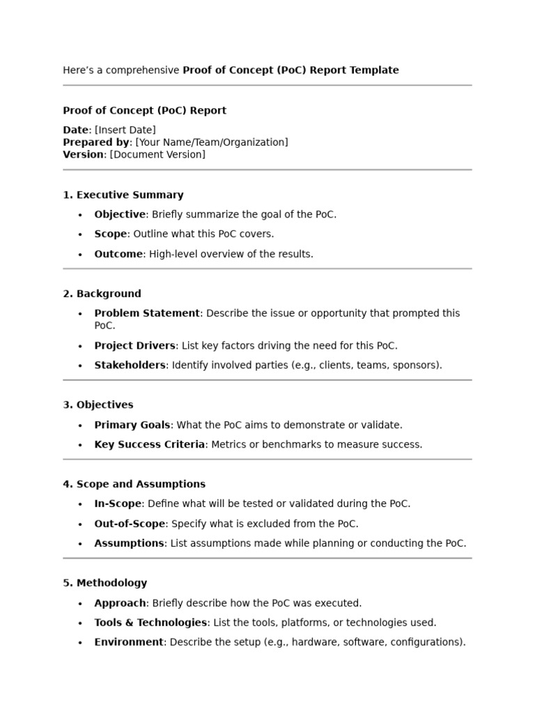 Proof of Concept (PoC) Report Template PDF Risk Feasibility Study