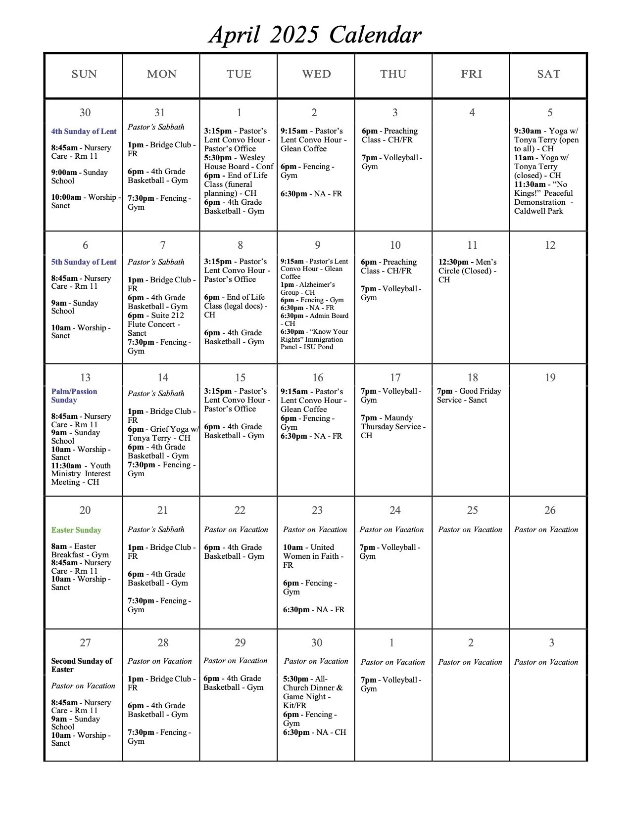 Monthly Calendar First United Methodist Church Pocatello