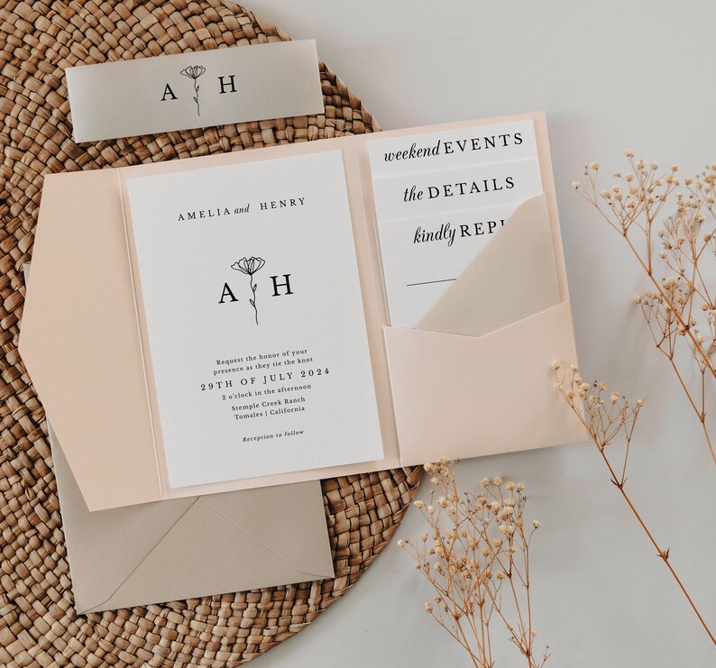 Blush Pocket Invitation Template Suite Modern Wedding Etsy