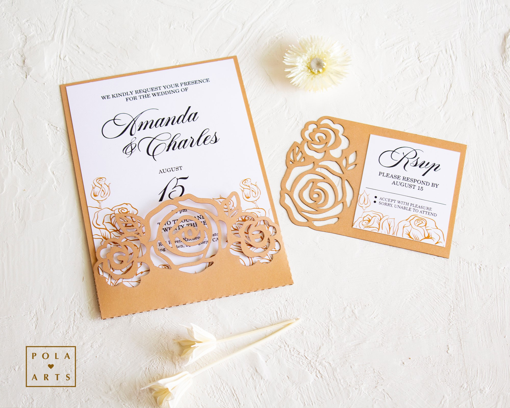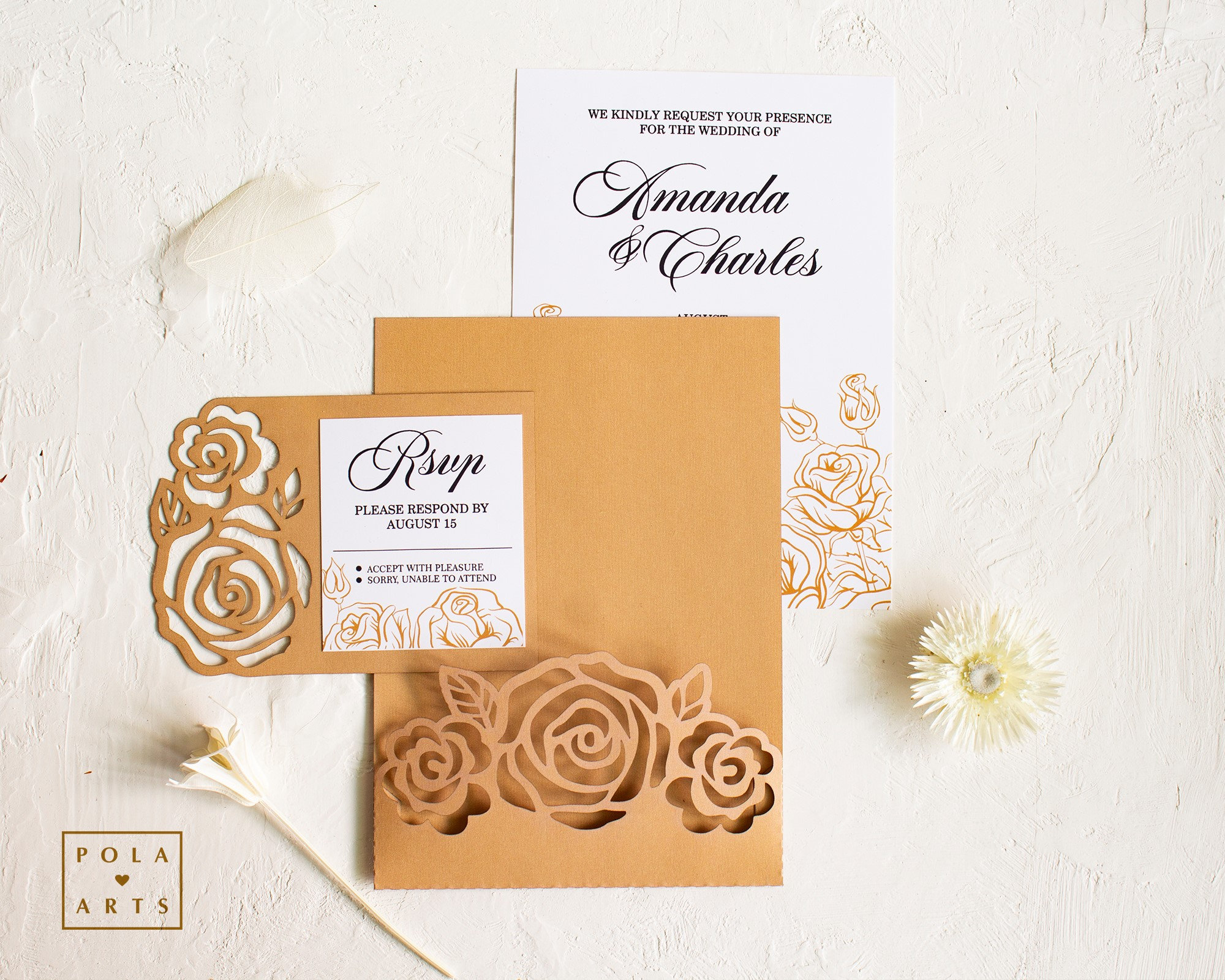 Roses Pocket Invitation Template Svg Rose Rsvp Card Flowers Wedding