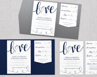 Pocket Wedding Invitation Template Set Instant by KarmaKWeddings
